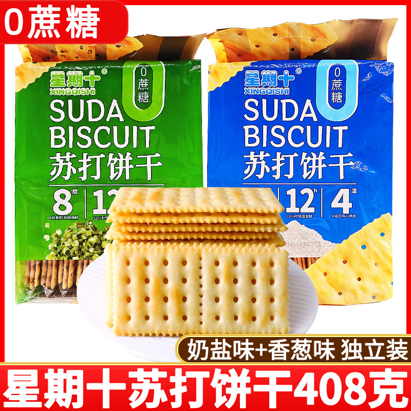 星期十蘇打餅干0蔗糖奶鹽味408g早點餐食品小奶香蔥味梳打餅解饞