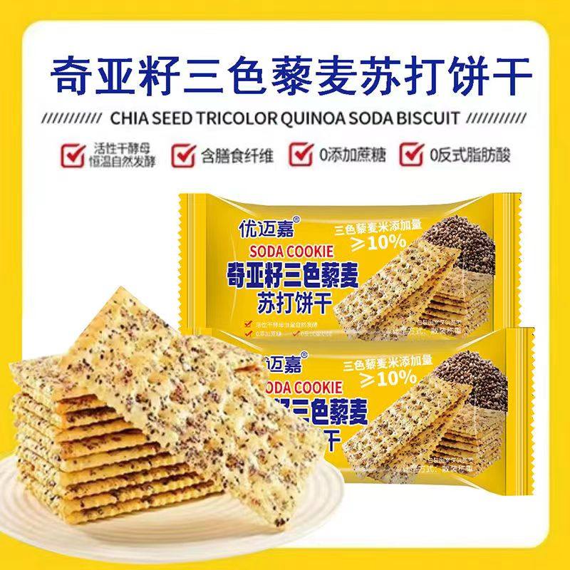 0添蔗糖奇亞籽三色藜麥蘇打餅干咸味酥脆蘇打餅淡堿健身休閑零食