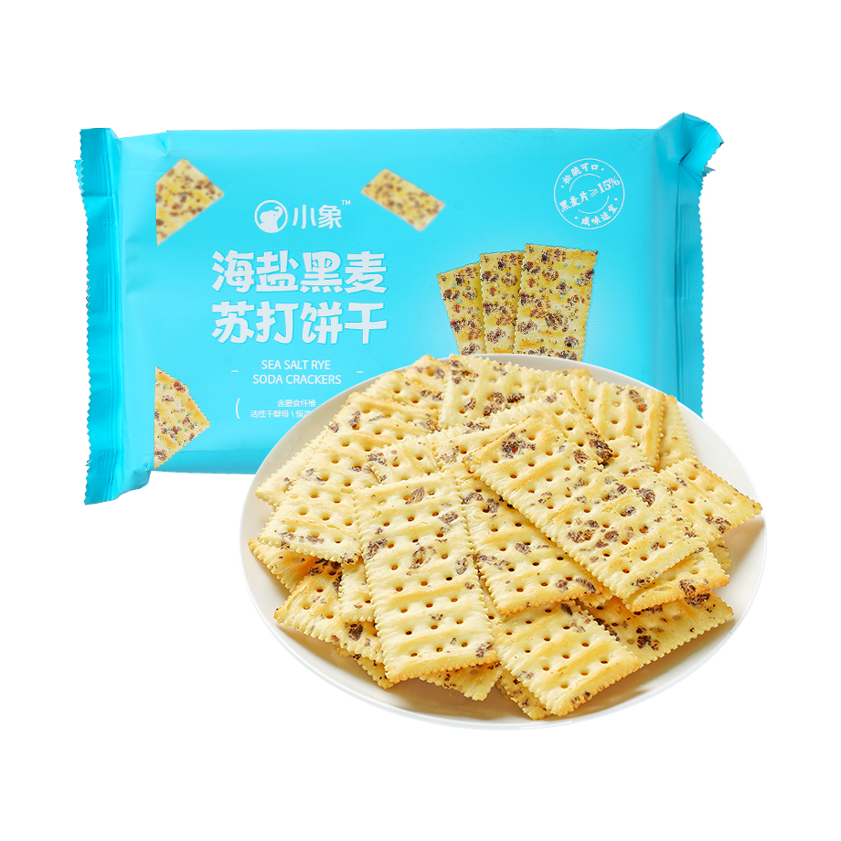 小象超市黑麥海鹽蘇打餅干228g辦公室休閑零食