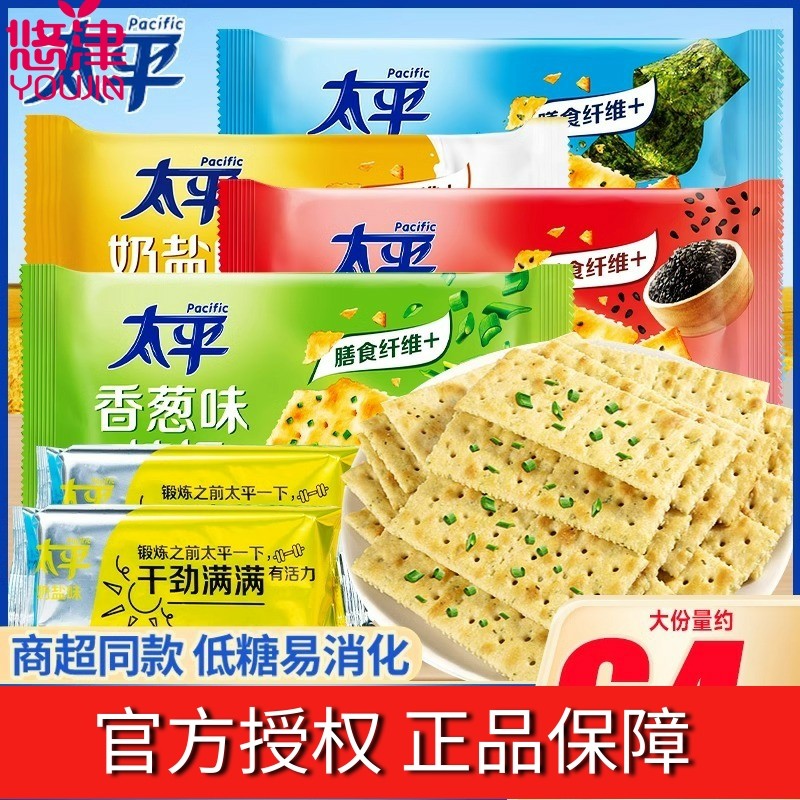 /太平蘇打餅干梳打加鐵奶鹽海苔咸味早餐充饑餅干零食小吃