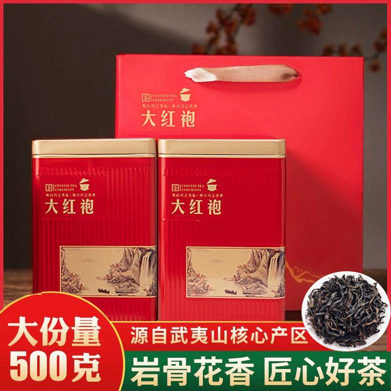 新貨武夷山大紅袍茶葉特級正宗濃香型禮盒裝肉桂茶正巖烏龍茶500g
