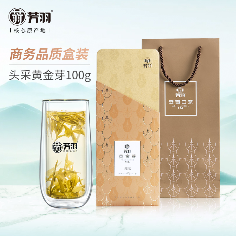 2025年新茶芳羽黃金芽茶葉開園頭采安吉白茶茶葉黃金葉禮盒裝99g