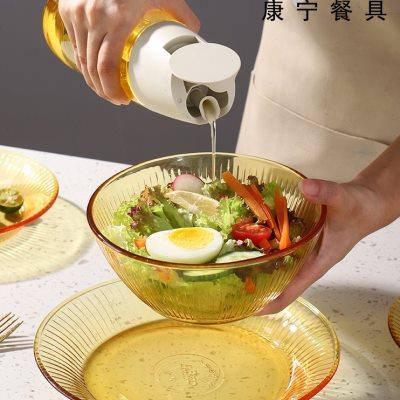 琥珀色玻璃碗碟盤子組合套裝家用餐具套裝大湯碗湯煲沙拉水果飯碗