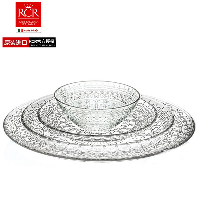 意大利RCR進口歐式水晶玻璃西餐盤子 水果盆圓形透明大果盤沙拉碗