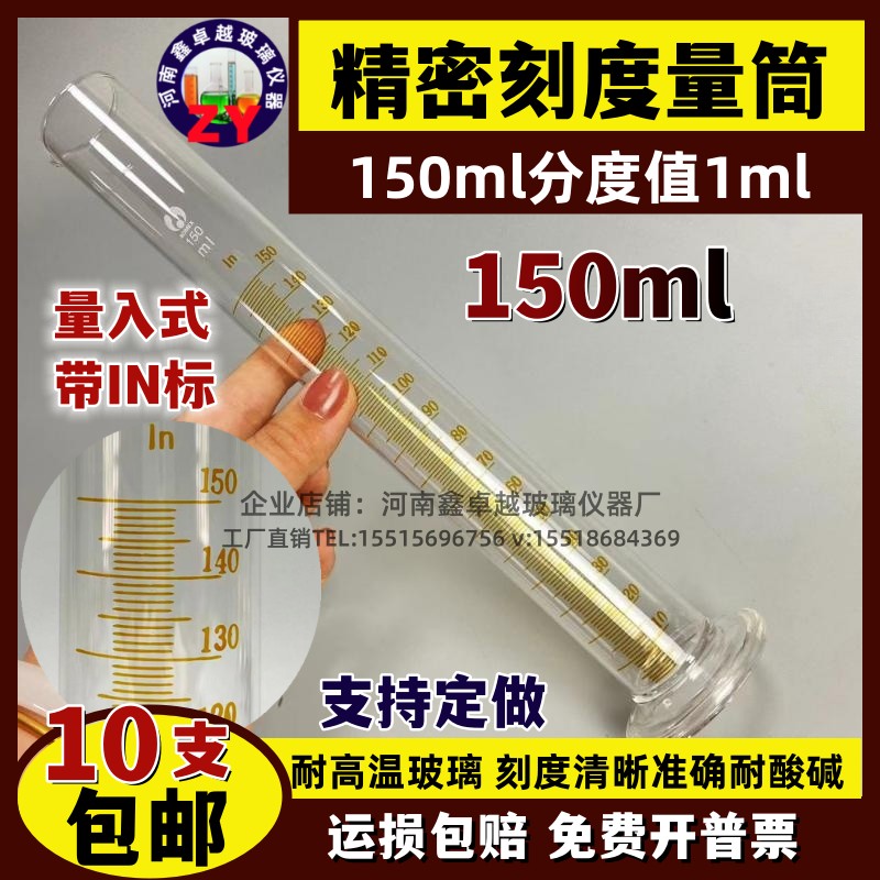 精密玻璃量筒110毫升玻璃量筒量入式分度1ml精密刻度玻璃量筒
