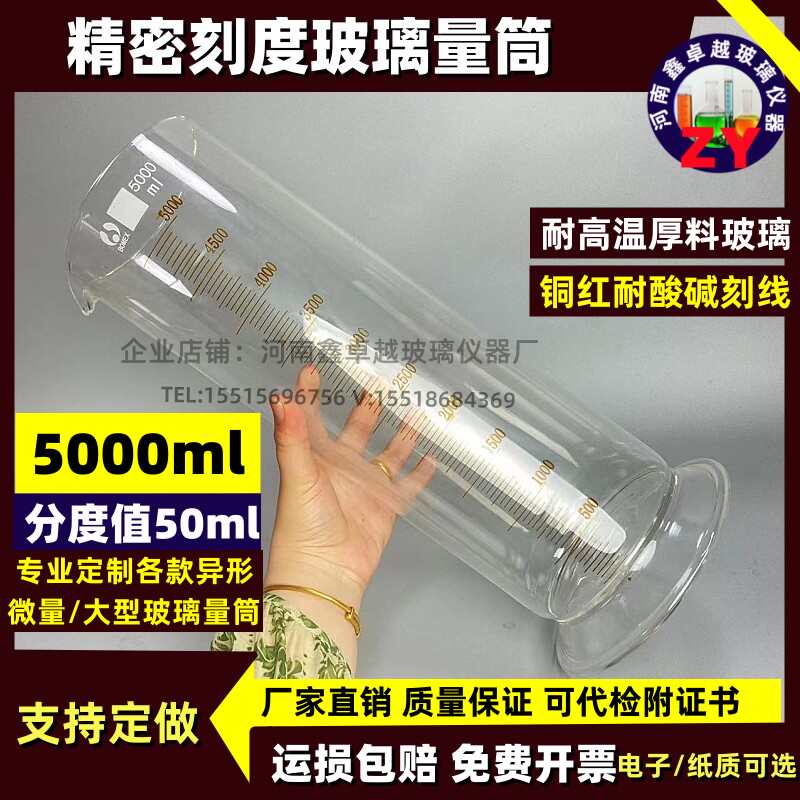 玻璃量筒5000ml分度50ml耐高溫玻璃材質高精度玻璃量筒A級可定做