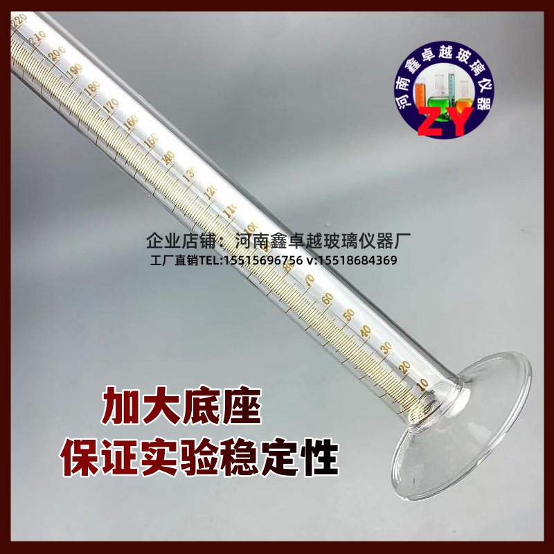 玻璃量筒量入式250ml分度1ml高精度玻璃量杯厚底座精密刻度量筒