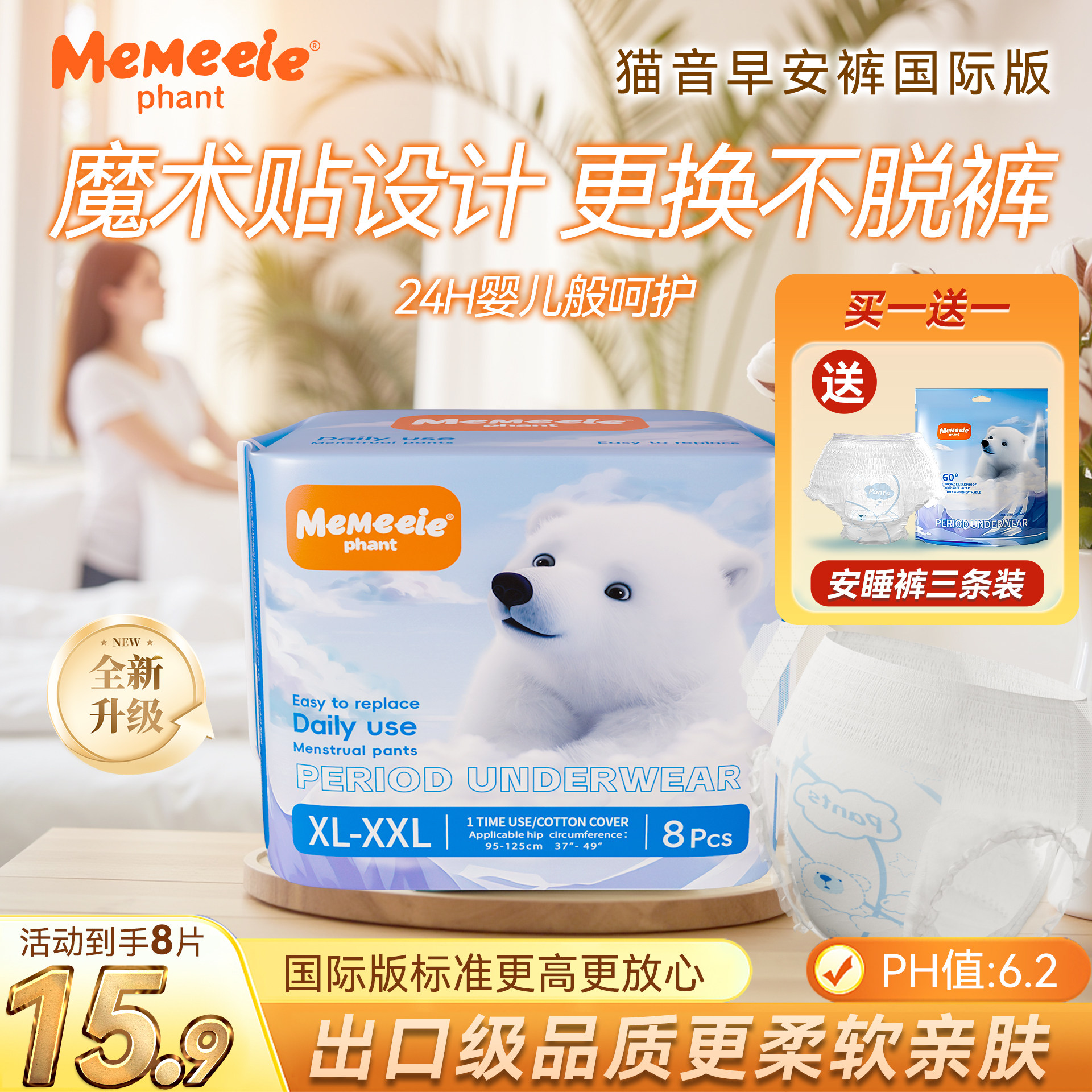 宜貝滋小時光弱酸抑菌超薄透氣衛生巾姨媽巾綿柔親膚安心安睡褲