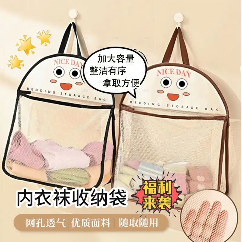 內衣襪子收納袋笑臉網兜宿舍大容量可掛式學生衣柜懸掛式置物袋門