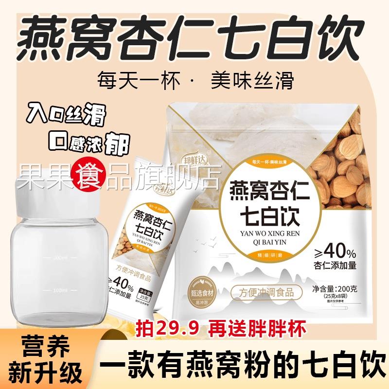 國藥藥材杏仁七白飲燕窩膠原蛋白營養早餐官方旗艦正品代餐杏仁粉