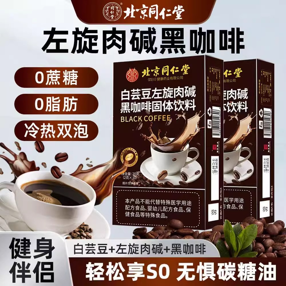 北京同仁堂白蕓豆左旋肉堿黑咖啡正品0脂0蔗糖純黑速溶濃縮咖啡粉