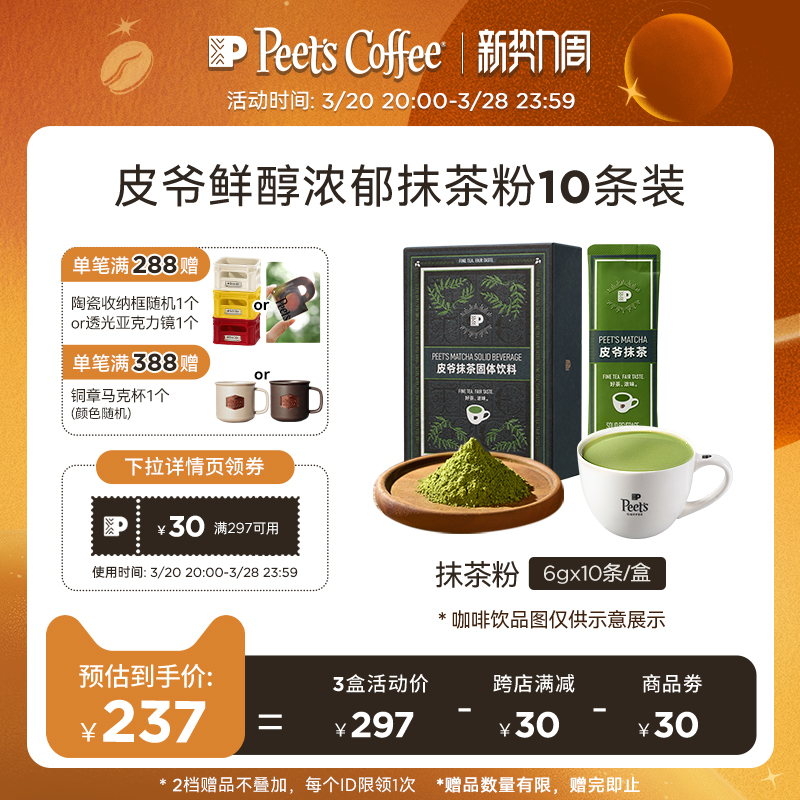 【門店同款】Peets皮爺抹茶固體飲料沖飲自制抹茶拿鐵抹茶粉60g