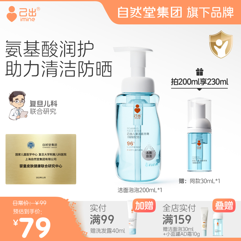 己出兒童潔面泡泡氨基酸慕斯溫和清潔3歲大童專用洗面奶洗防曬