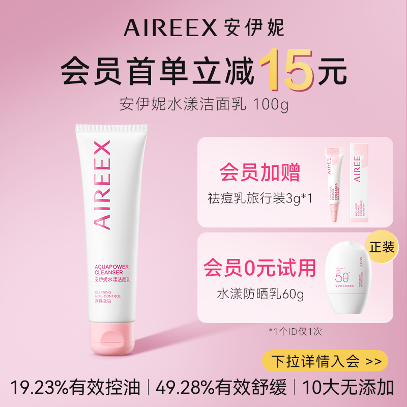 AIREE安伊妮青少年洗面奶卸防曬淡妝油痘肌清潔不緊繃敏感可用