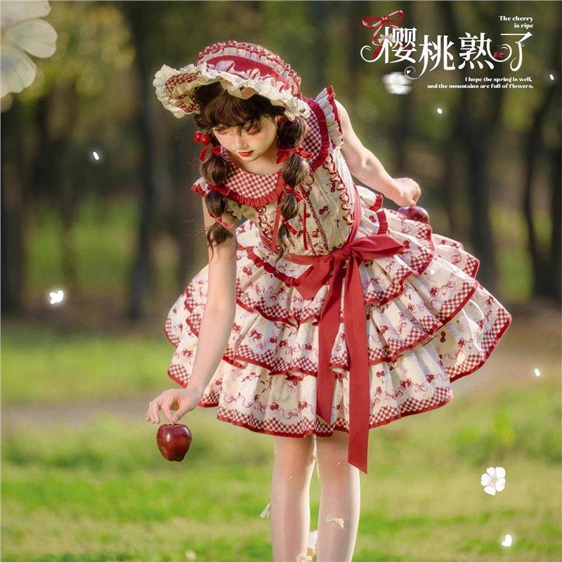櫻桃熟了短款lolita裙分體套裝可愛甜心紅色蛋糕裙洛麗塔日常輕lo