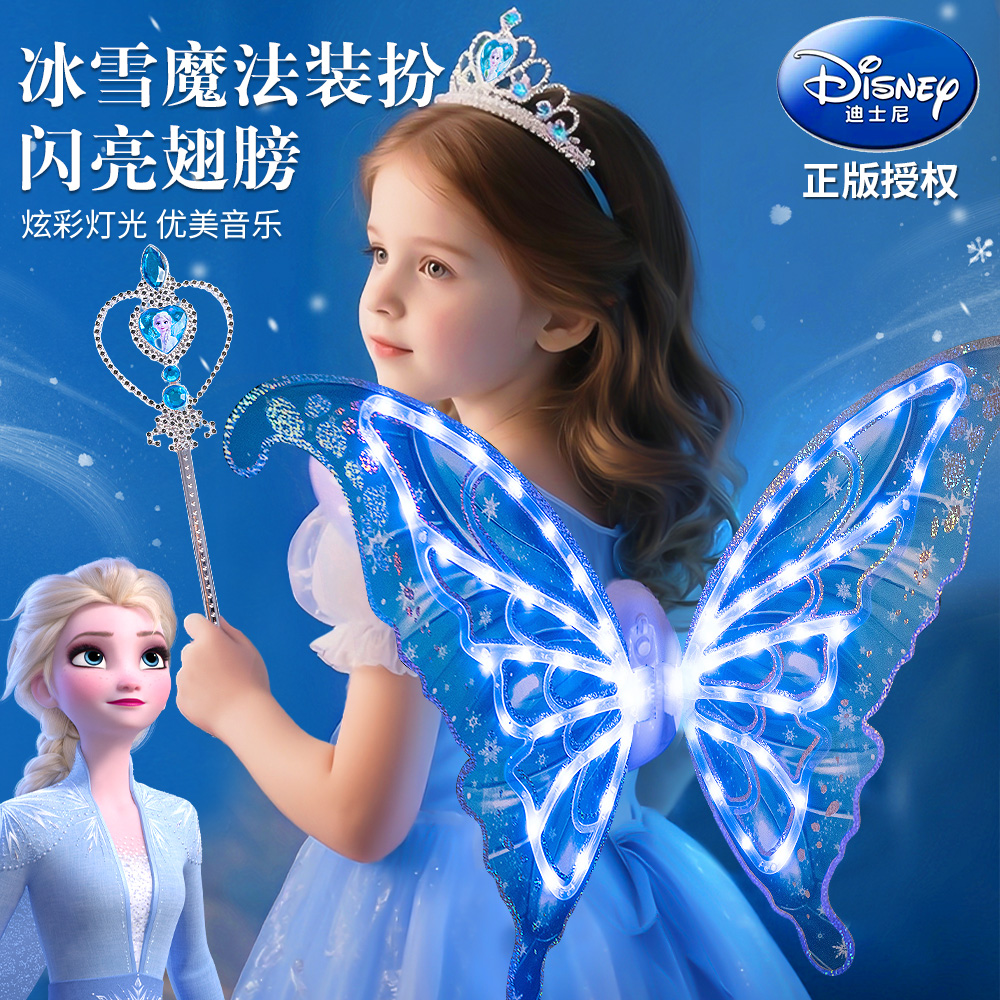 正版冰雪奇緣蝴蝶翅膀發光玩具艾莎公主女孩電動背飾女童生日禮物