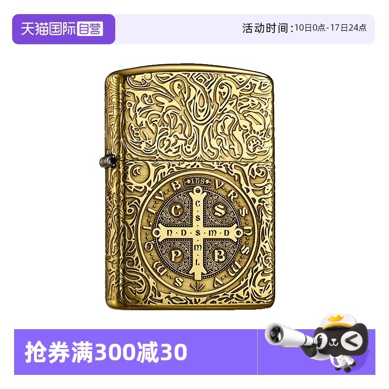 【自營】zippo打火機官方原裝正品蚊版黃銅盔甲康斯坦丁竹盒裝