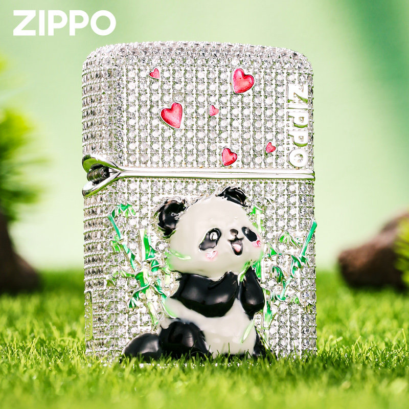 zippo打火機正品 滿鉆熊貓夜光外殼芝寶官方防風煤油送男朋友禮物