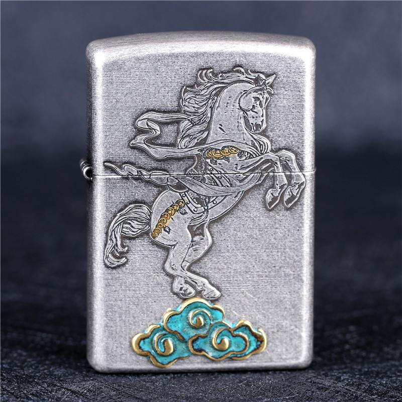 zippo芝寶煤油防風打火機古銀復古做舊雕刻奔馬平步青云 男士禮物