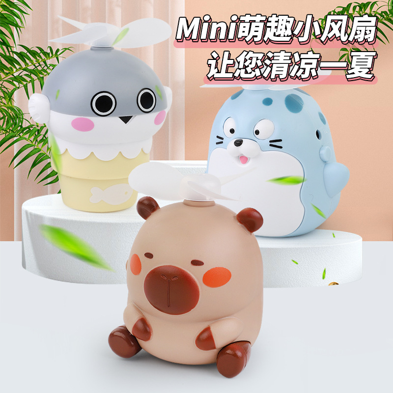 夏日充電USB迷你風扇卡皮巴拉卡通手持便攜式風扇戶外玩具禮品