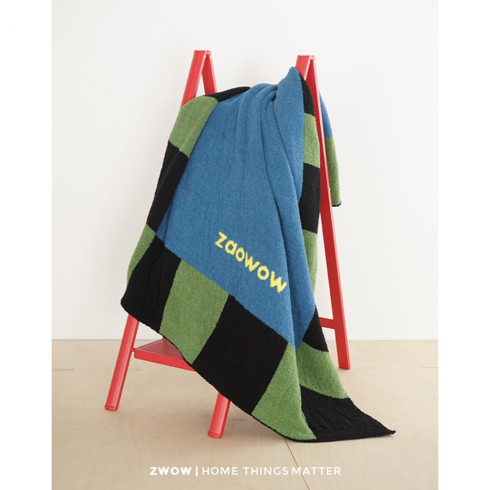 造臥zwow孟菲斯格子紋中古雙面加厚半邊絨蓋毯休閑毯毛毯午睡毯子