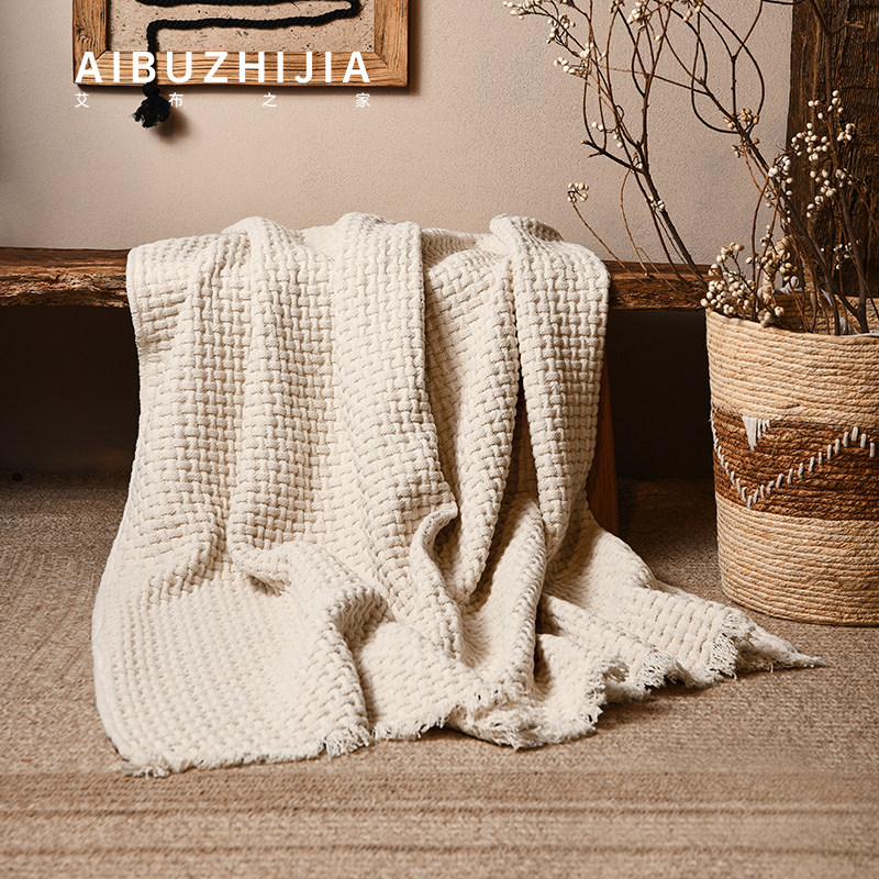 高端民宿親膚全棉搭毯會所侘寂風抽須客廳沙發蓋毯四季通用