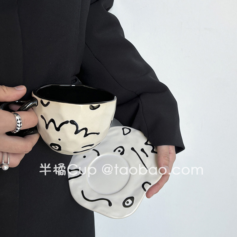 半橘Cup 復古咖啡杯碟套裝高級感陶瓷杯子拿鐵杯下午茶小眾禮物