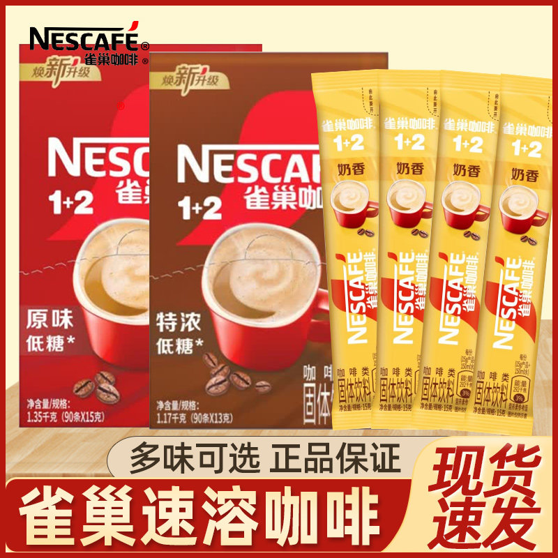 雀巢1+2原味咖啡三合一學生提神低糖速溶咖啡粉90條盒裝官方正品