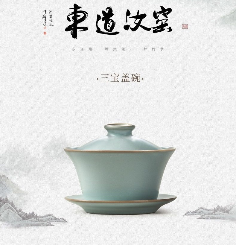 專柜正品 東道汝窯 三寶蓋碗 三才蓋碗 家用辦公室功夫茶具天青色