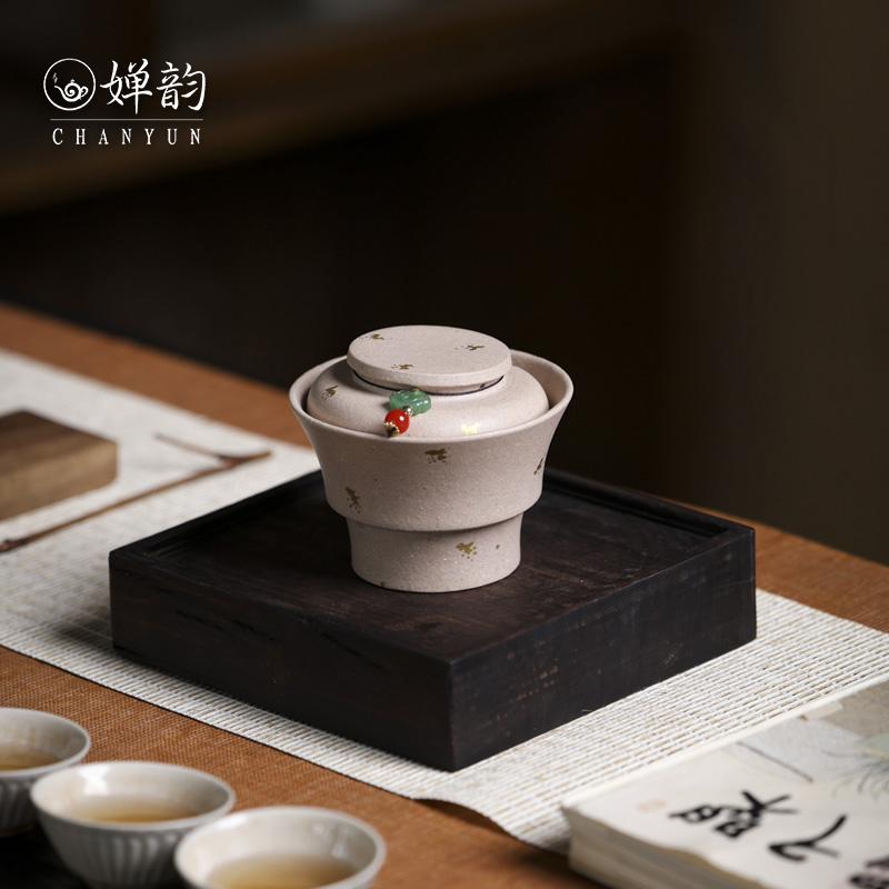 嬋韻 窯云宜興紫砂奢香蓋碗桃花泥灑金手工復古家用茶具小田甄選