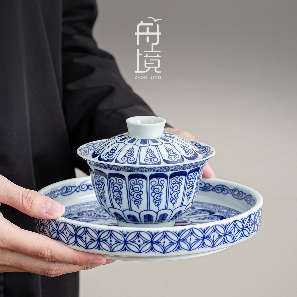 三勤堂手繪釉下青花寶相三才馬蹄泡茶蓋碗景德鎮陶瓷功夫茶具茶碗
