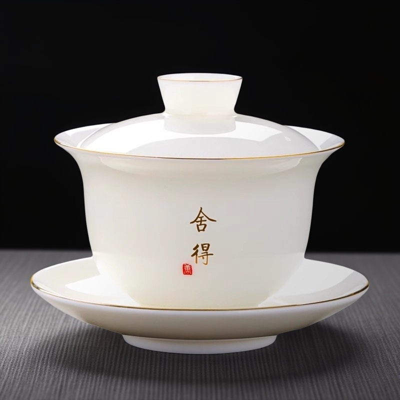 云栩德化羊脂玉白瓷單個蓋碗陶瓷手工大號泡茶器家用功夫三才茶碗