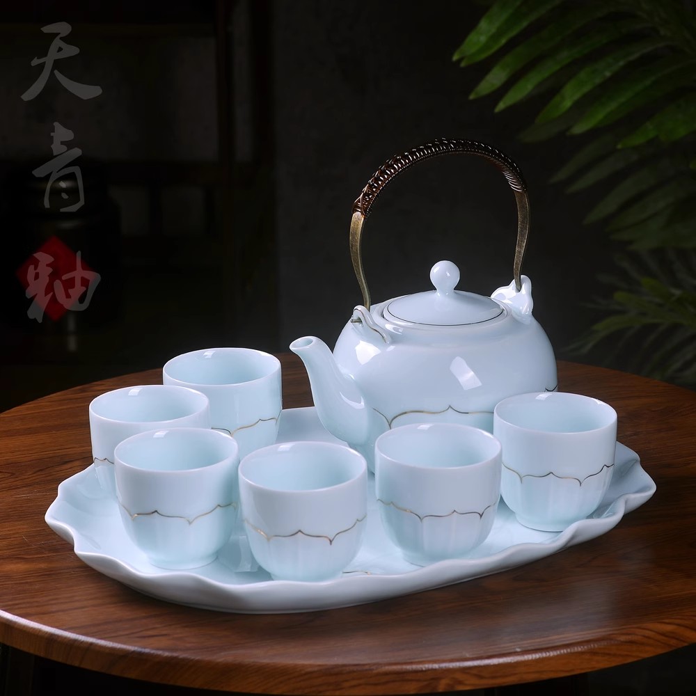 虎匠景德鎮陶瓷茶具套裝家用客廳整套中式青花瓷大號復古茶壺茶杯