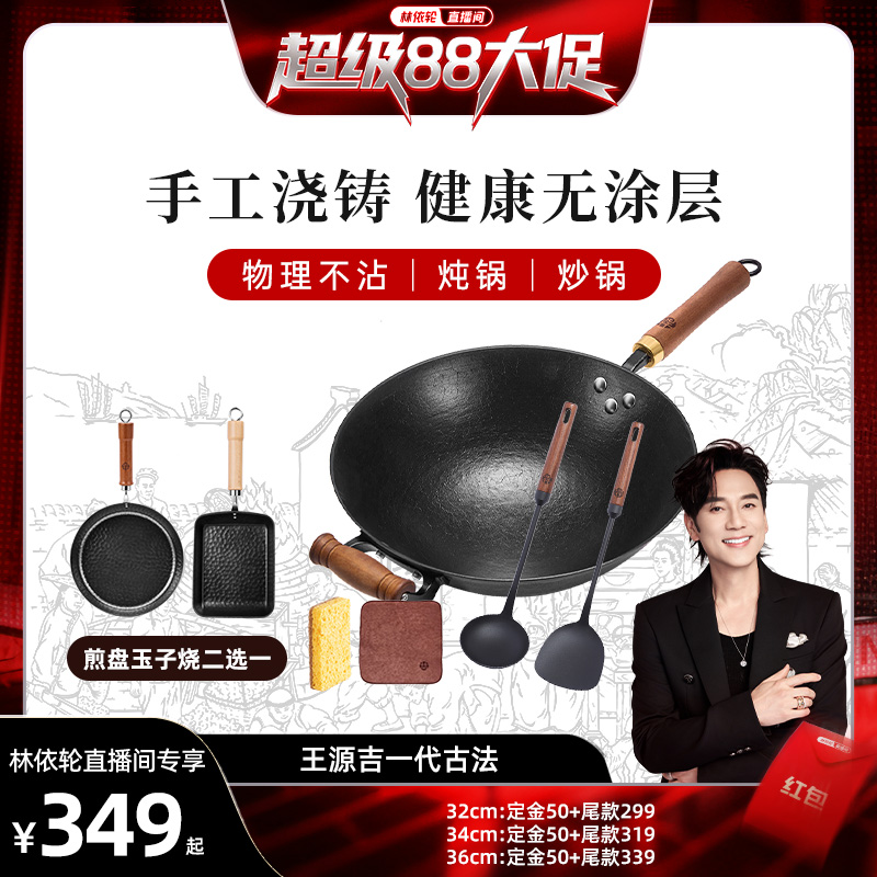 林依輪直播間 王源吉古法鐵鍋鑄鐵鍋家用炒菜鍋老式生鐵不粘炒鍋