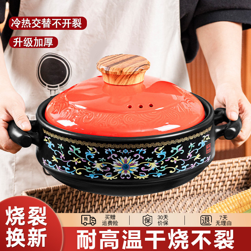 陶瓷纏枝紋砂鍋燉鍋煲湯沙鍋耐高溫大湯煲燉鍋家用燃氣煤氣灶專用