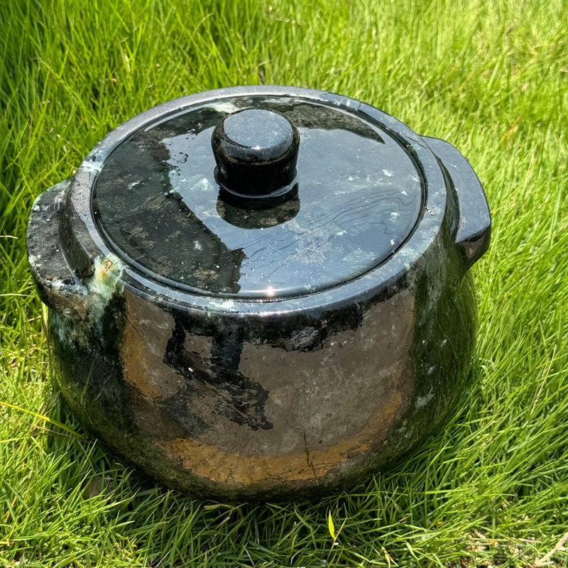精品高檔墨脫石鍋老皂石玉化雪花紋手工打磨石鍋養生鍋16維量元素