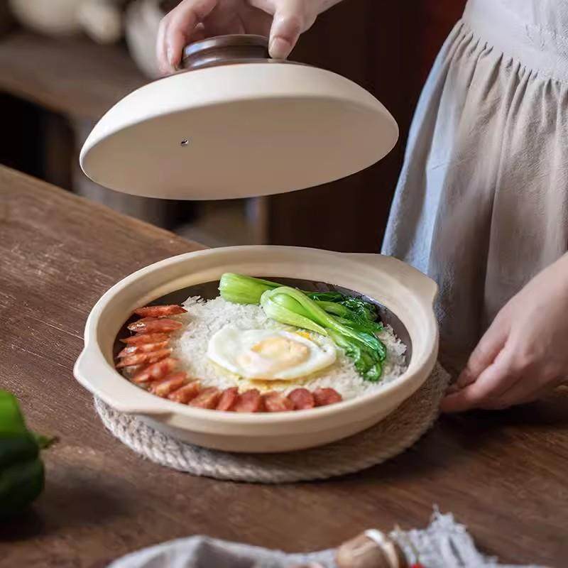 瓦煲蓋黃燜雞米飯專用砂鍋煲仔飯干燒鍋耐高溫陶瓷小沙鍋淺平鍋商