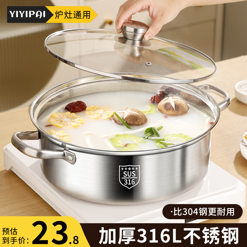 316不銹鋼湯鍋家用加厚蒸煮一體鍋電磁爐通用大容量高湯鍋煮粥鍋