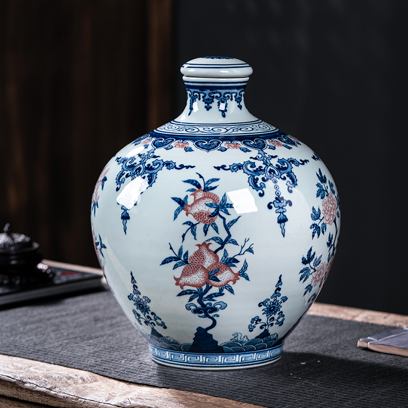 景德鎮陶瓷泡酒壇子釀酒缸私藏10斤20斤50斤仿古酒瓶家用密封酒壺