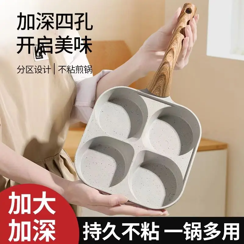 加深麥飯石四孔煎蛋鍋雞蛋漢堡鍋早餐鍋煎蛋神器家用不粘鍋平底鍋
