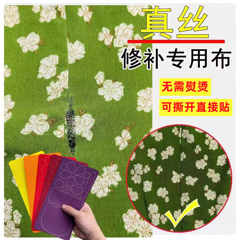 真絲面料補丁貼布撕裂劃傷勾破裝飾貼免縫自粘修補布桑蠶絲補修補