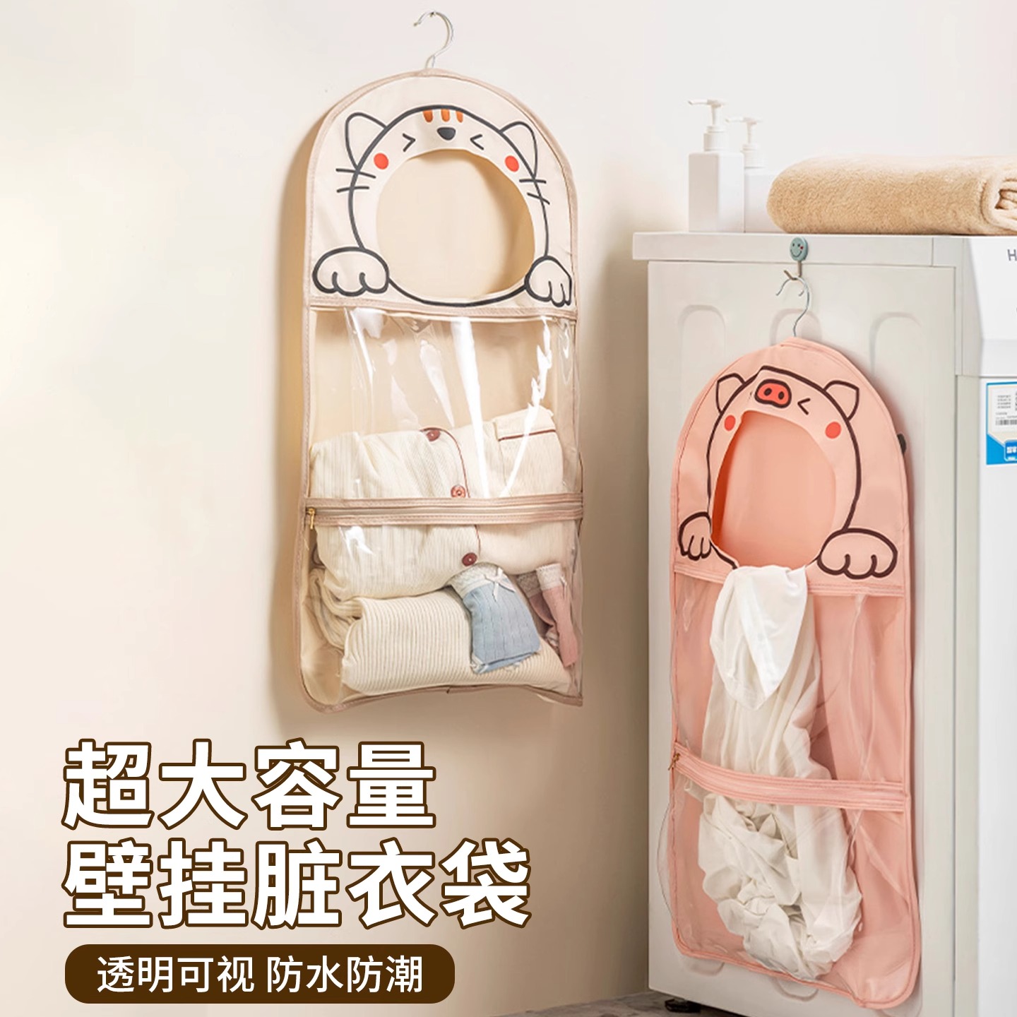 臟衣簍壁掛式衛生間浴室透明防水衣物網兜掛式內褲襪子整理置物袋