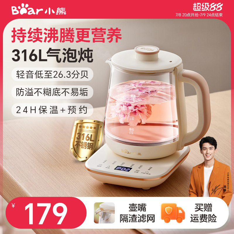小熊養生壺家用多功能煮茶壺2023新款小型辦公室玻璃多功能燒水壺