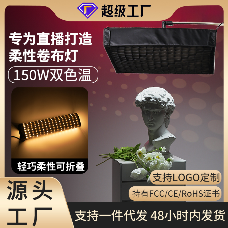 JB10Bi卷布燈150W雙色溫直播間頂燈影棚拍攝補光燈LED常亮燈