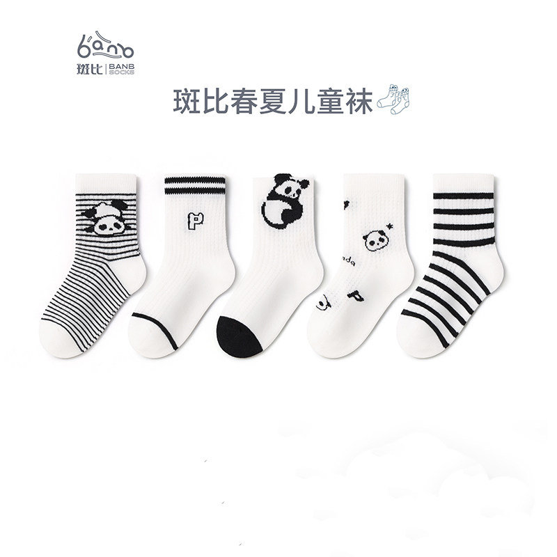 2025友邦斑比網面薄棉春夏款薄襪兒童襪子一盒五雙裝禮盒熊貓