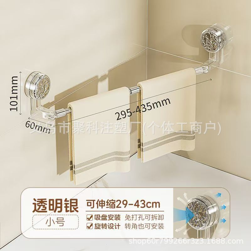 2025新款吸盤可伸縮毛巾架衛生間免打孔浴室毛巾桿置物架收納掛架