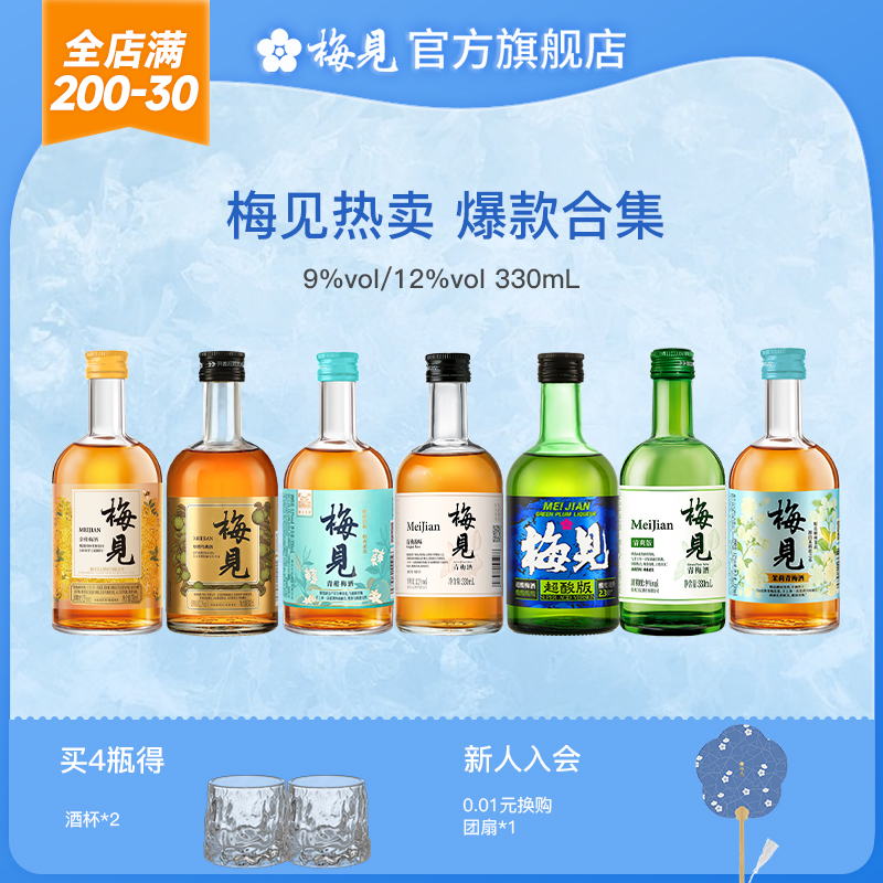 【選4瓶下單】梅見青梅酒2瓶330ml組合裝青梅原味桂花酒果酒甜酒