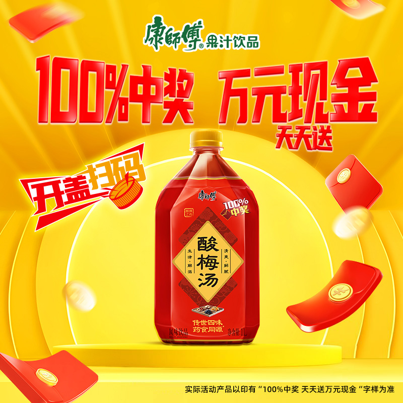 康師傅飲品酸梅湯1L*12瓶酸梅湯風味飲料整箱解膩官方飲品