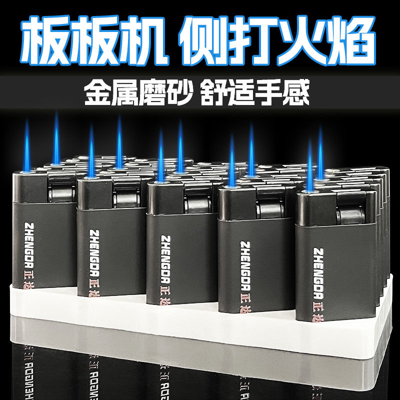 【黑板】板板機藍焰直沖防風打火機可充氣金屬外殼防摔防爆打火機