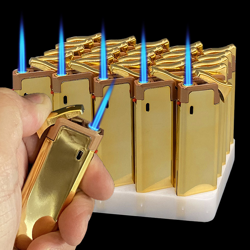 新款高端土豪金翻蓋金屬防風打火機藍火直沖耐用商店采購廠家直銷